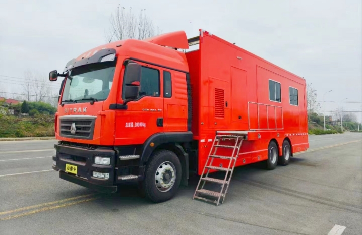 我公司生產的通信指揮車基于汕德卡ZZ5266XXYN504GF1K型廂式運輸底盤改裝,該底盤變速箱為手動變速箱,最高車速89km/h,發動機型號為MC07H.35-60,發動機排量:7360ml,排放國Ⅵ標準。消防通信指揮車以汕德卡ZZ5266XXYN504GF1K型廂式運輸底盤作為改裝平臺,保證工作人員擁有寬敞舒適的工作環境,并且為系統的運行和維護提供符合技術要求的環境條件。在保持整車優良性能的前提下對車輛進行改裝而成,實現符合用戶使用要求的工作環境、使用功能而量身定制的特種專用車輛。消防通信指揮車具備通信組網功能和指揮通信與情報信息采集功能。通過高清晰、低照度車載云臺攝像機,可實現全天候、多方位、大范圍的現場監控功能。通過車載硬盤錄像機,可以對現場的情況進行適時錄像、錄音記錄,以便日后進行調查,并可通過USB接口及數據端口與其他存儲設備相連接,進行現場刻錄,便于錄像資料的及時、有效保存。車載液晶電視可集中顯示系統采集到的信息,便于領導實時掌握事發現場的各種情況,可以及時指揮調度,正確決策。