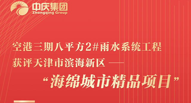 中慶集團空港三期八平方2#雨水系統工程獲評天津濱海新區“海綿城市精品項目”